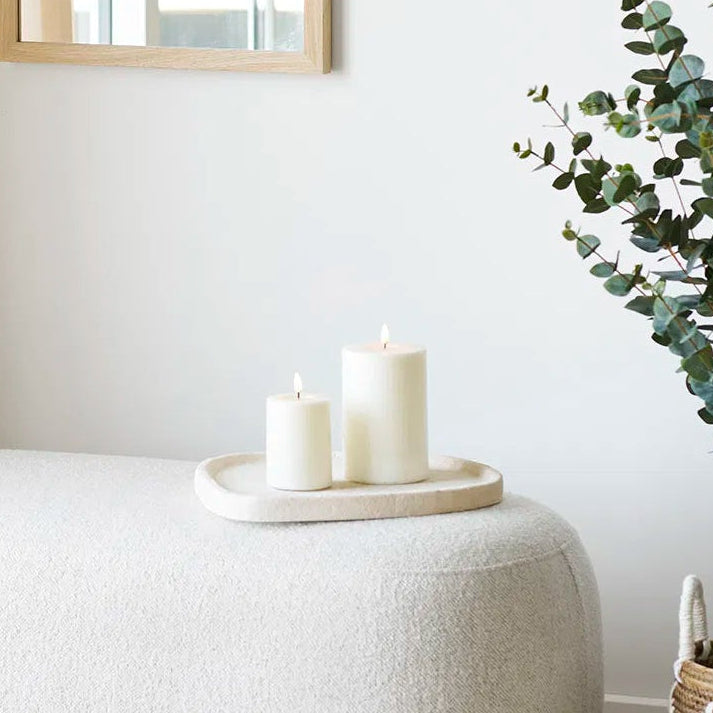 Deze beige tray van cement is de perfecte basis voor een sfeervol tafelstyling. Gebruik hem om je favoriete kandelaars, vaasjes of andere accessoires op te plaatsen en creëer eenvoudig een stijlvol geheel. De natuurlijke kleur en het robuuste materiaal zorgen voor een rustige, maar stoere uitstraling die in elk interieur past. Mooi op de eettafel, salontafel of dressoir.