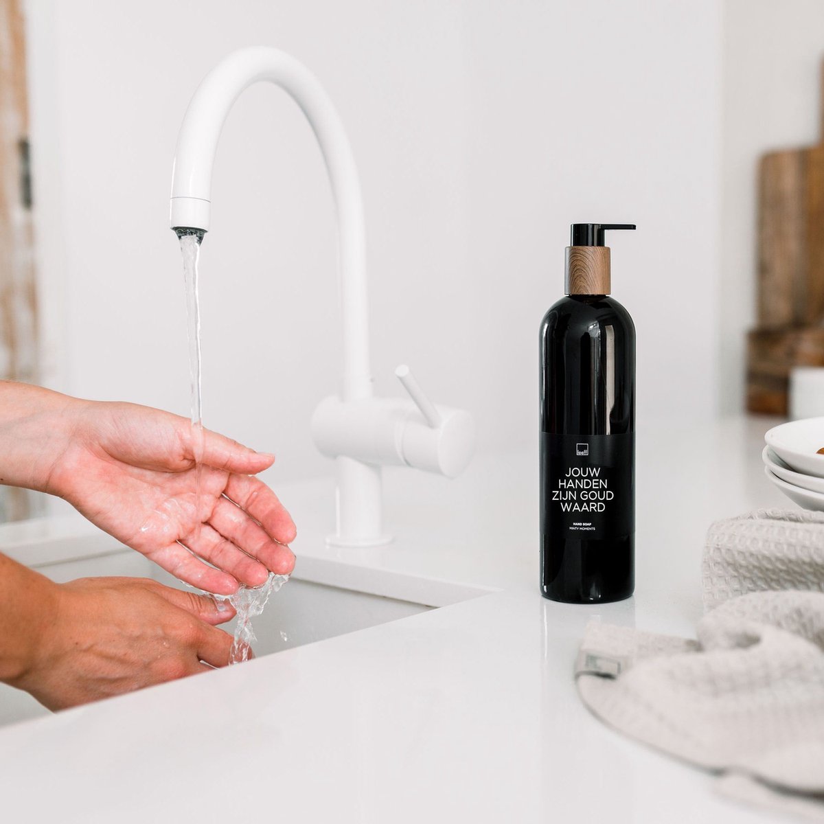 Breng wat extra sfeer in je keuken of badkamer met de heerlijke handzeep van Leeff. De Hand Soap Fabulous Fig ruikt niet alleen fantastisch, maar ziet er ook nog eens prachtig uit. Met de quote ‘jouw handen zijn goud waard’ is het een leuk cadeautje.