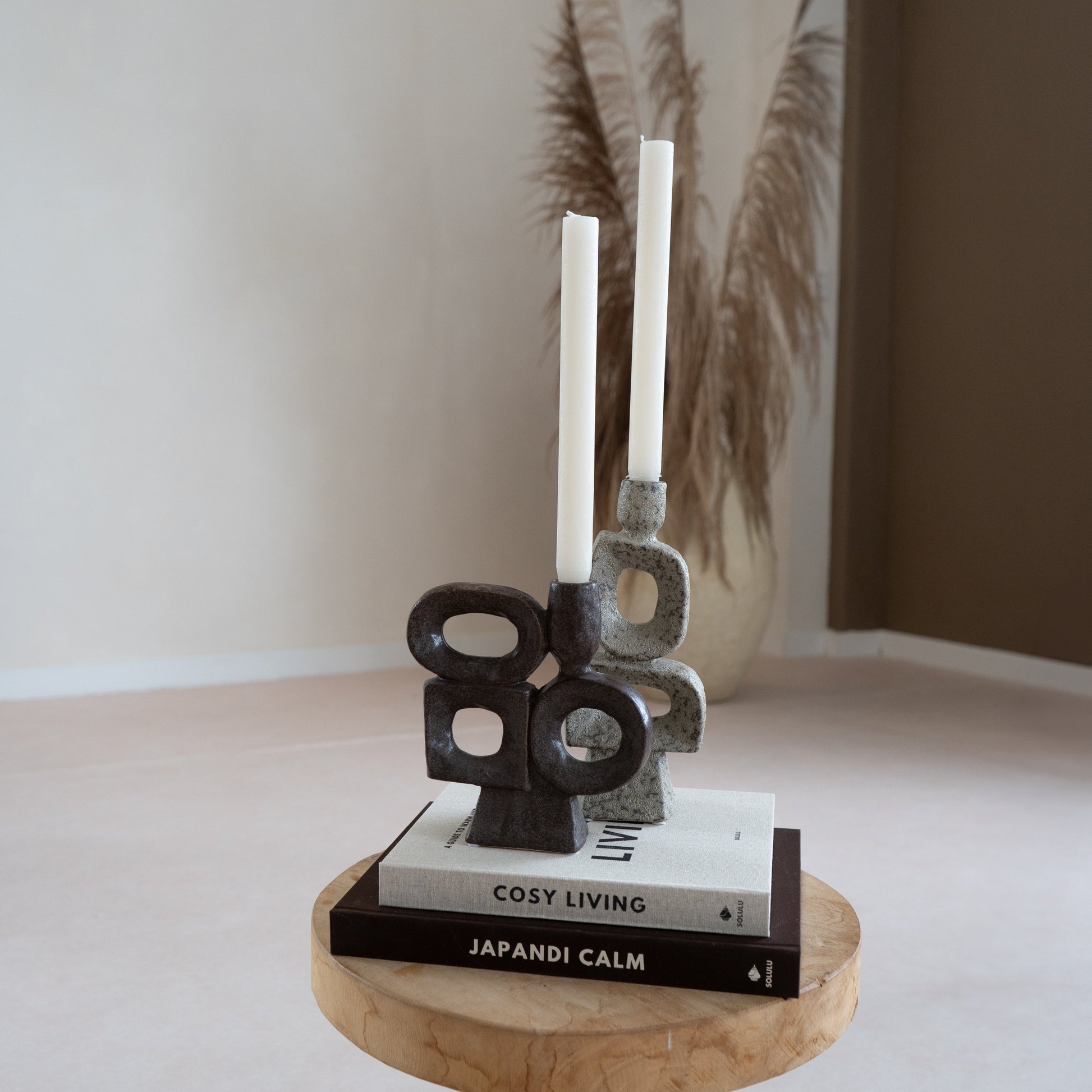 De Nina spikkel kandelaar van hoogwaardig keramiek combineert organische vormen met een handbewerkte finish. Het speelse design met subtiele spots voegt een modern, artistiek accent toe aan je interieur. Mooi solo of gecombineerd met de bruine-variant, perfect voor een warme sfeer op dressoir, bijzettafel of vensterbank.