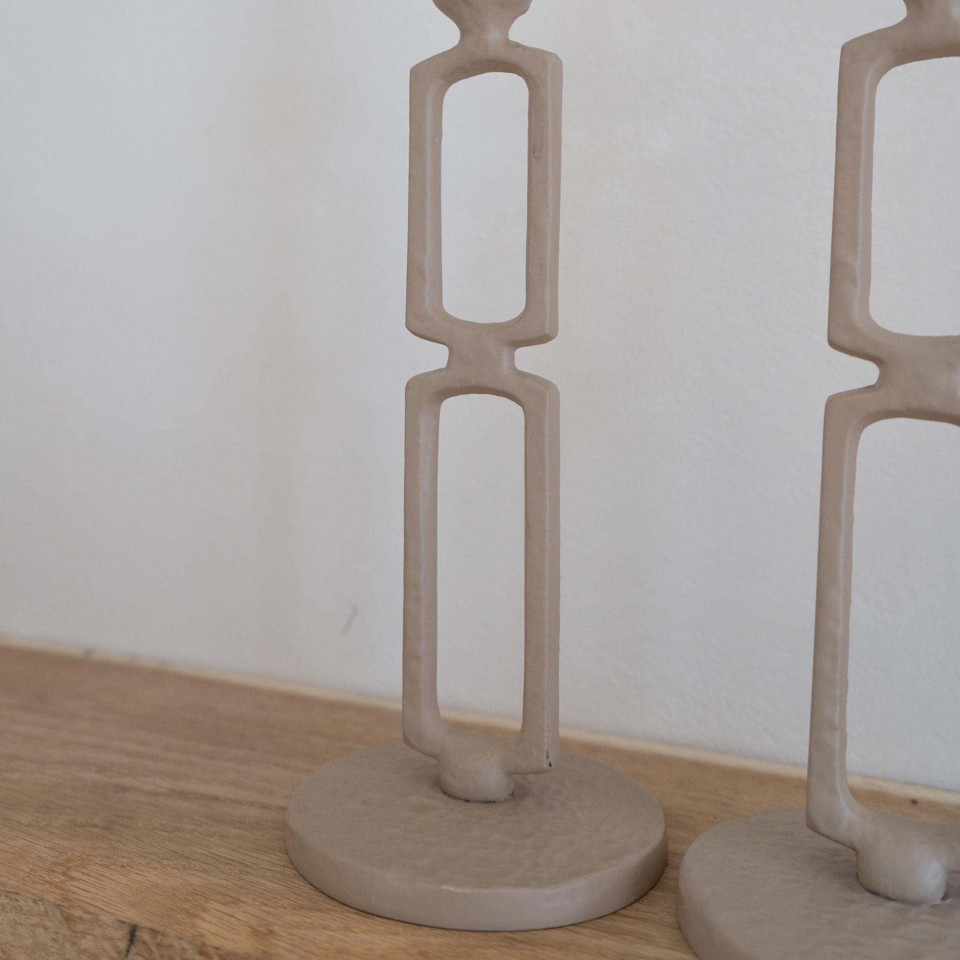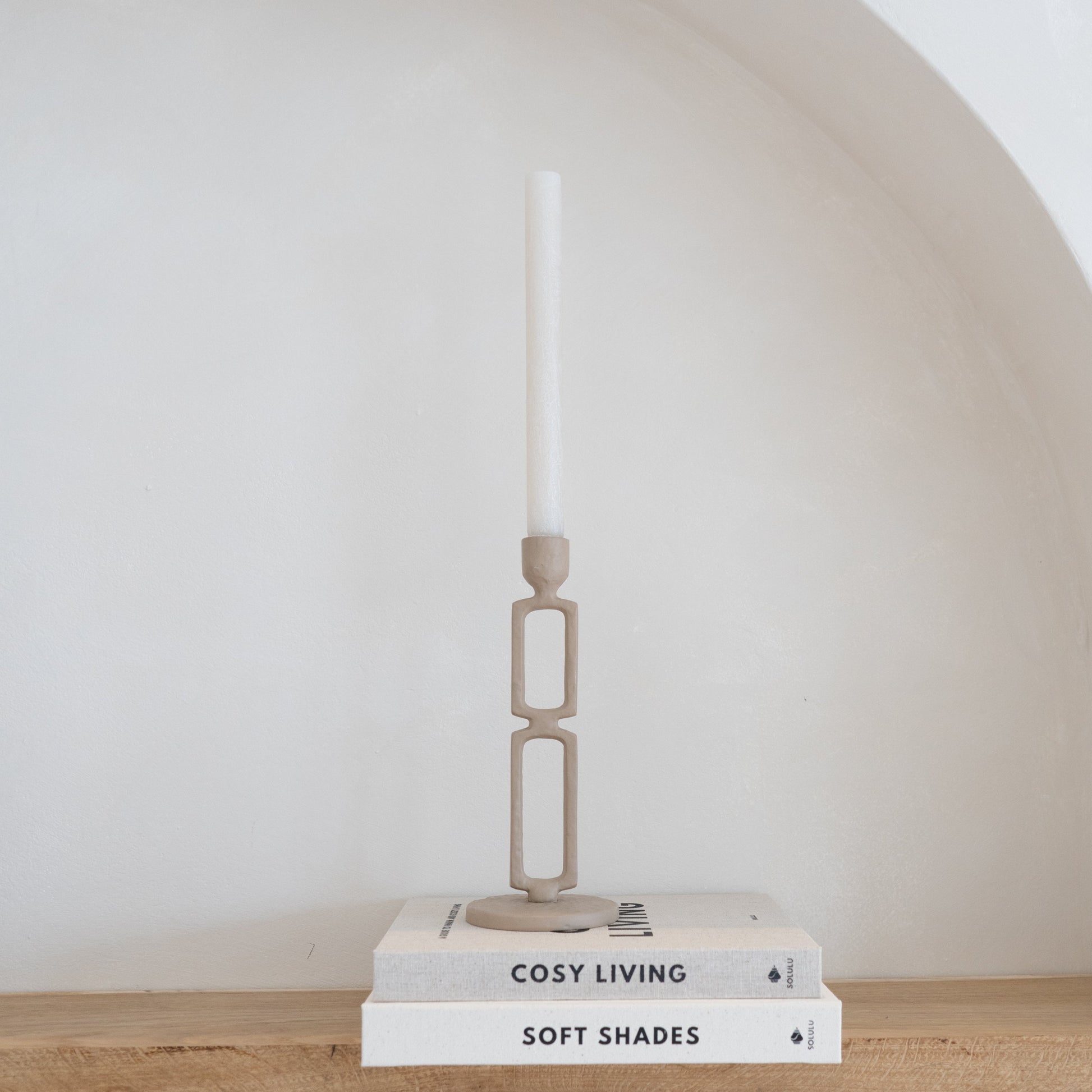 Breng subtiele elegantie in je interieur met deze beige metalen kandelaar. Het minimalistische ontwerp met twee rechthoekige openingen maakt het een stijlvolle blikvanger, terwijl het warme kaarslicht een uitnodigende sfeer creëert. Perfect voor op een dressoir, salontafel of eettafel, deze kandelaar combineert functionaliteit met een eigentijdse uitstraling en past moeiteloos in zowel moderne als klassieke interieurs.